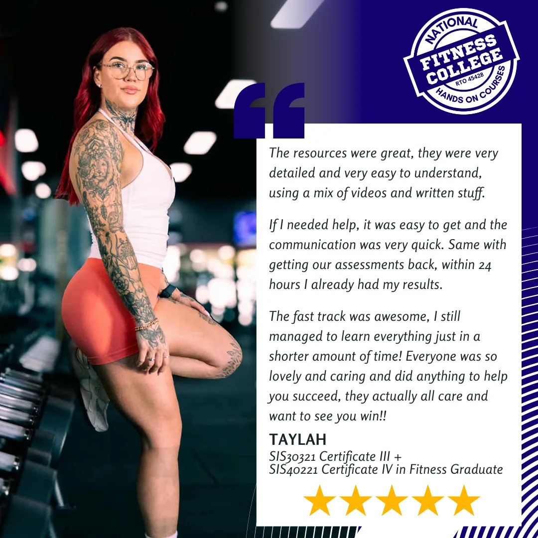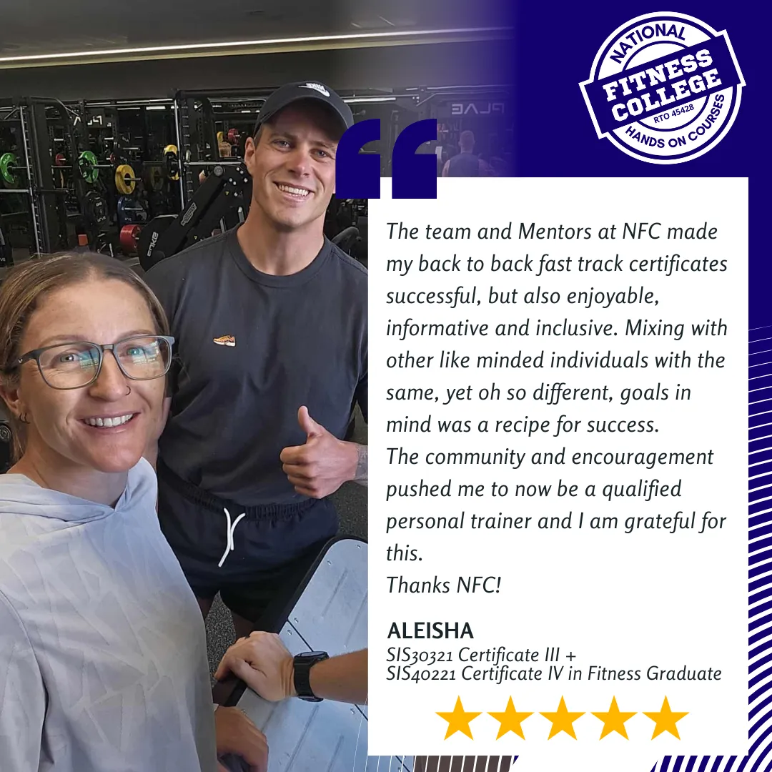 We specialise in the 8 week Fast Track program, where we provide the structure and framework to successfully complete either your Certificate 3 (SIS30321) or 4 (SIS40221) in just 8 weeks! Become a part of a driven community by attending weekly Zoom Meetings for coaching and accountability, as well as receiving extra support from the Education Team. If the Fast Track isn't for you, don't stress! Our Self Paced option allows you 12 months per Certificate to complete your studies, as well as still receiving the same great support from the Education Team and ability to jump into our Graduate Launch, Practical Assessment Weekends or Fast Track programs at any time.